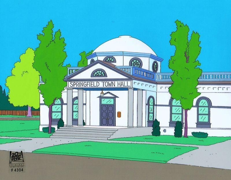 This is a hand painted production background used in making an episode of "The Simpsons". Episode BABF21 "Treehouse of Horror Xl" Nov. 1, 2000. A really cool collectible for any Simpsons fan. 875
