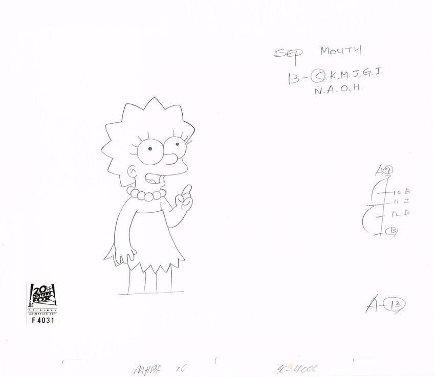 This is an original production drawing used in making "The Simpsons" Episode MABF10 "The Greatest Story Ever D'ohed" March 28, 2010 (Season 21). Featured here is Lisa Simpson.225