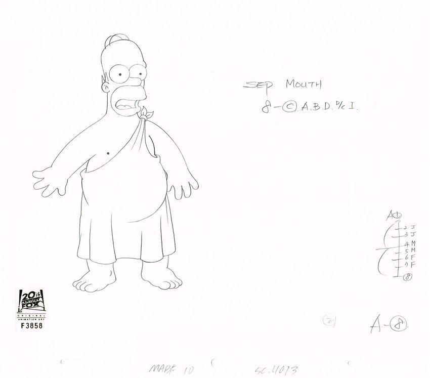 This is an original production drawing used in making "The Simpsons" Episode MABF10 "The Greatest Story Ever D'ohed" March 28, 2010 (Season 21). Featured here is Homer Simpson.