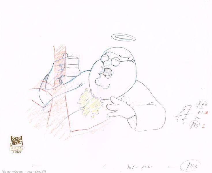 This is an original production drawing used in making "Family Guy". Episode 3ACX01 "Emission Impossible" 11/8/2001 (Season 3). Featured here is Peter Griffin.