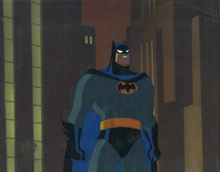 This is an original hand painted production cel. Featured here is Batman. This was used in making Batman: The Animated Series "Appointment in Crime Alley" 1992.525