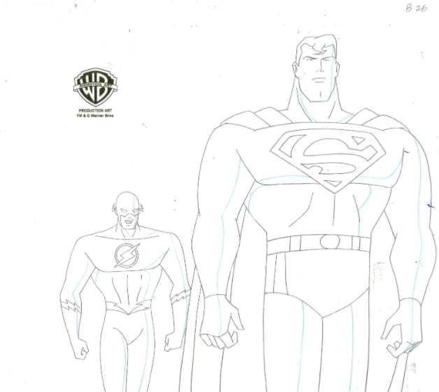 This is an original production drawing used in making "Superman The Animated Series, Speed Demon". Featured here is Superman and Flash.350