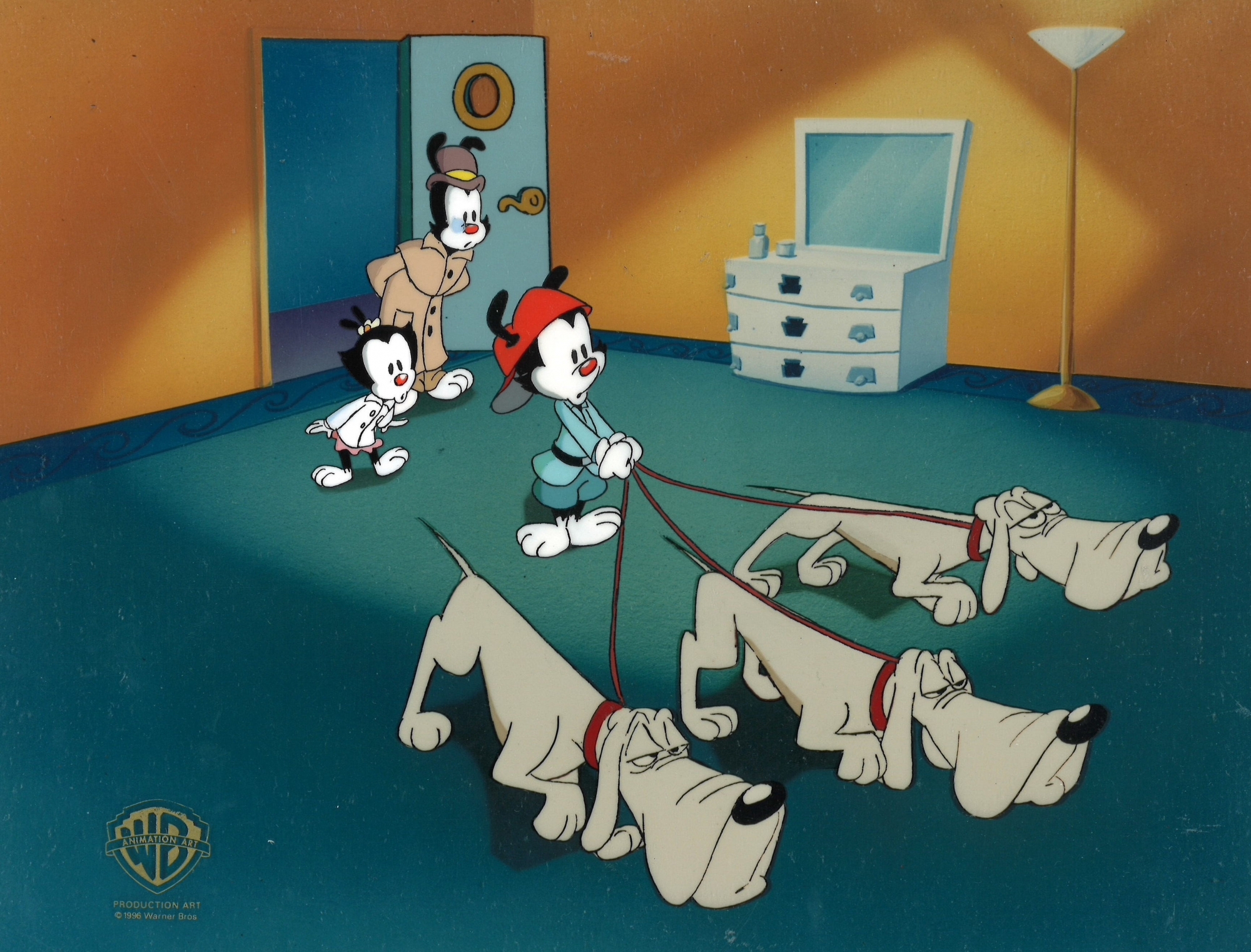 This is an original production cel used in making an episode of "Animaniacs". Featured here is Yakko, Wakko, Dot.