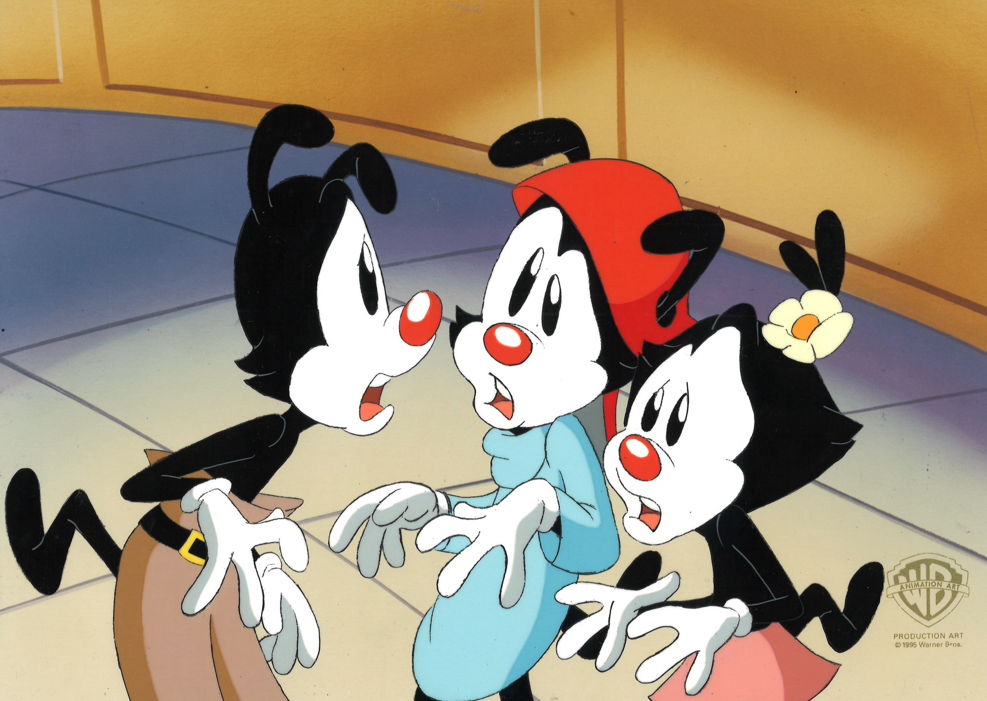 This is an original production cel used in making an episode of "Animaniacs". Featured here is Yakko, Wakko, Dot.