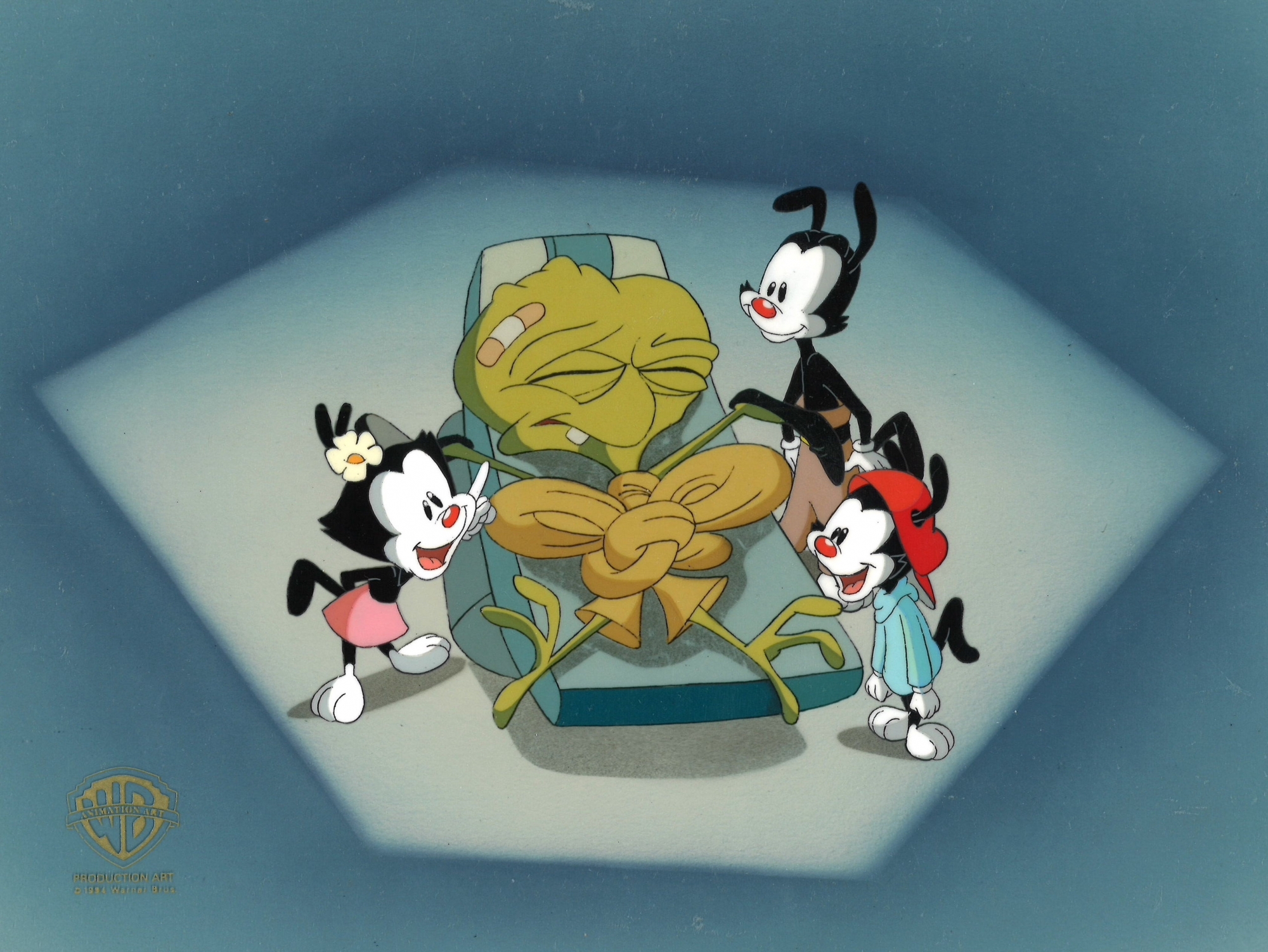 This is an original production cel used in making an episode of "Animaniacs". Featured here is Yakko, Wakko, Dot.