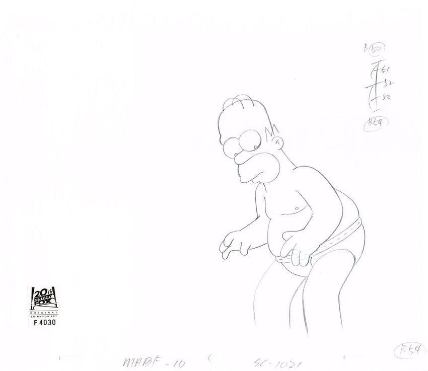 This is an original production drawing used in making "The Simpsons" Episode MABF10 "The Greatest Story Ever D'ohed" March 28, 2010 (Season 21). Featured here is Homer Simpson.250