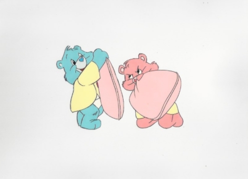 This is an original hand painted production cel with original production drawing. Featured here are Carebear Cheer Bear and Grumpy Bear. Comes with a gallery certificate of authenticity.