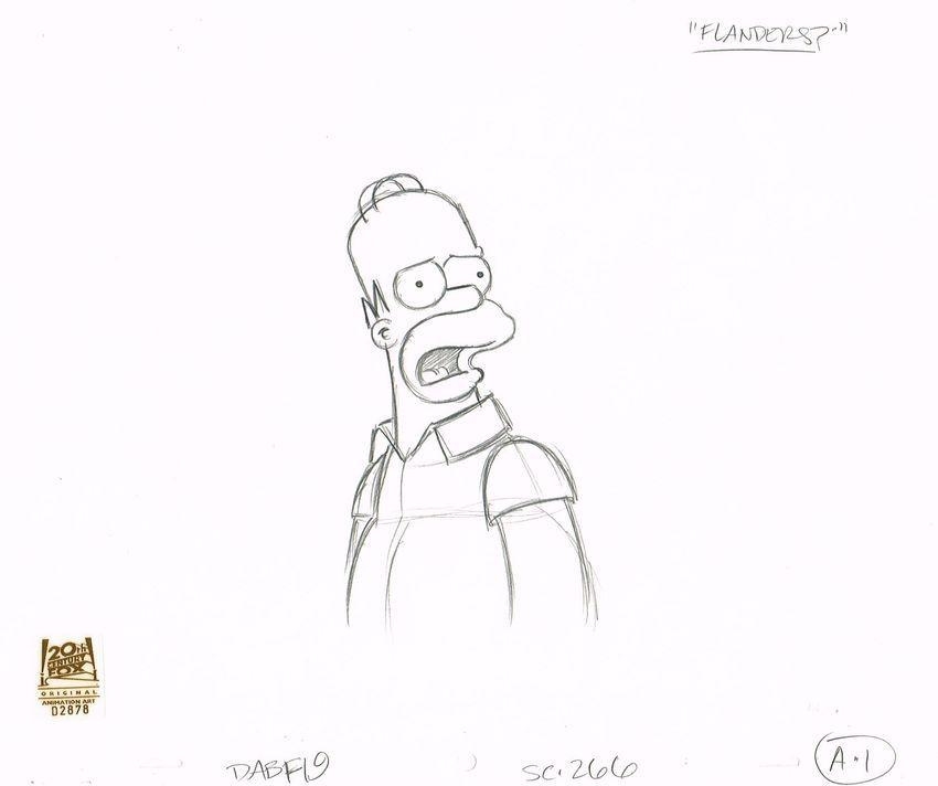 This is an original production drawing used in making "The Simpsons" Episode DABF19 "Treehouse of Horror Xlll" November 3, 2002. Featured here is Homer Simpson.