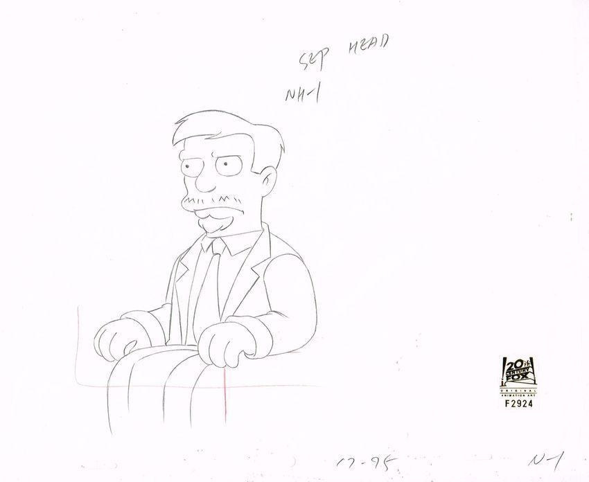 This is an original production drawing used in making "The Simpsons" Episode DABF17 "Papa's Got a Brand New Badge" May 22, 2002. When Wiggum and his men prove ineffective in controlling a citywide riot, the townspeople begin to feel unsafe until Homer forms his own police force. Featured here is Dr. Nick.