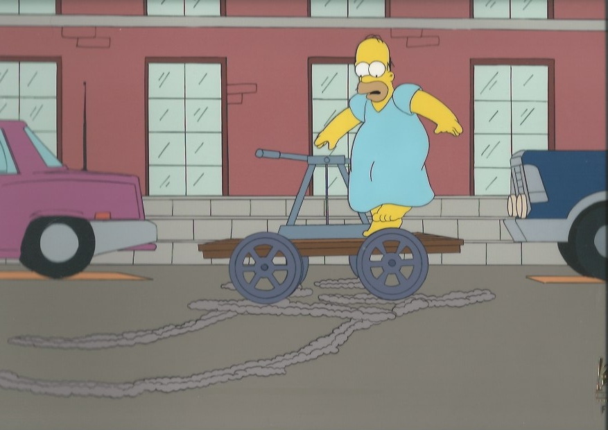 This is an original hand painted production cel used in making an episode of "The Simpsons". Episode AABF04 titled "Homer Simpson in: Kidney Trouble", December 6, 1998 (Season 10). Featured here is Homer Simpson.