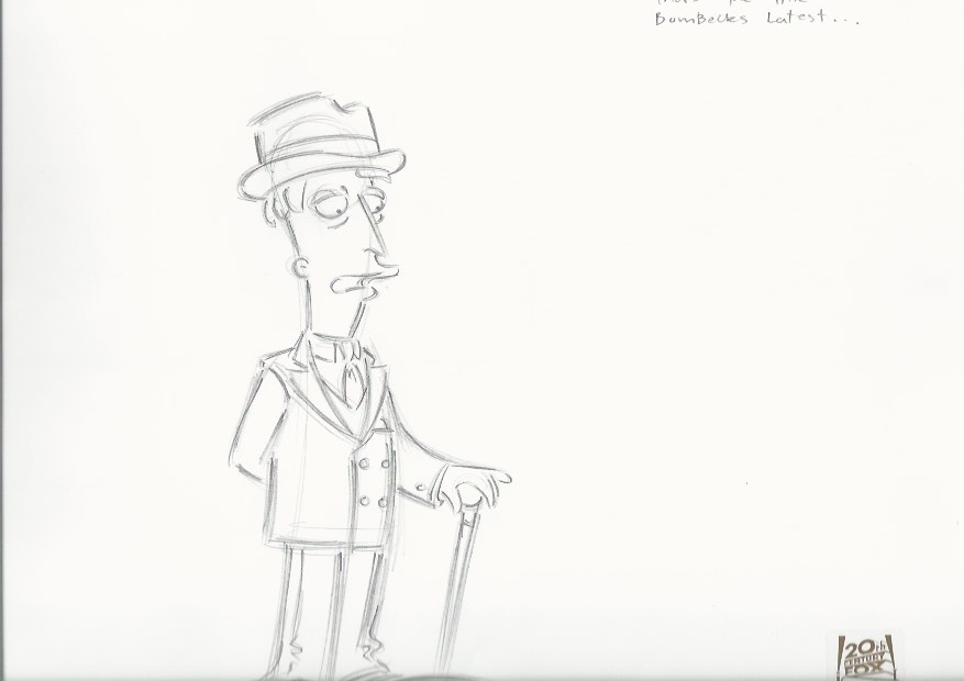 This is an original production drawing used in making "The Simpsons". Episode 4F14 title "Brother from Another Series" February 23, 1997. Sideshow Bob is once again released from prison, into the care of his respectable brother Cecil; Bob takes a job on Cecil's dam project, but Bart and Lisa suspect he's up to no good. Featured here is Sideshow Bob.