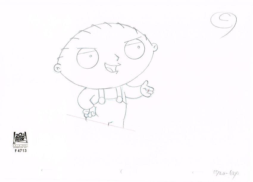 This is an original production drawing used in making "Family Guy". Episode JACX20 "The Talented Mr. Stewie" October 10, 2020. Featured here is Stewie Griffin.