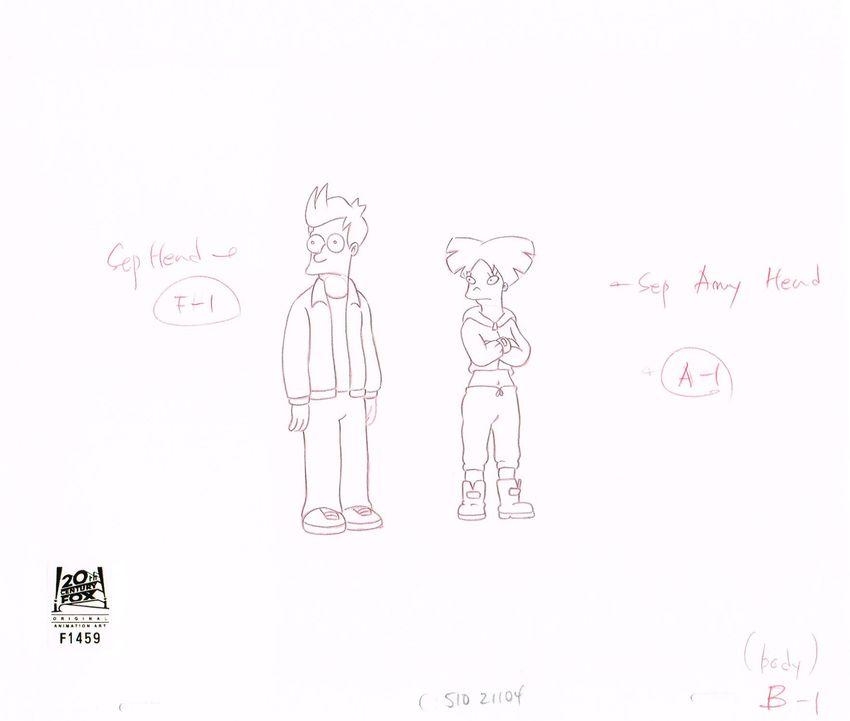 *SOLD* This is an original production drawing used in making an episode of "Futurama". Episode 5ACV10 title "Bender's Game". Original air date: November 4, 2008 (Season 5). Featured here are Fry and Amy.