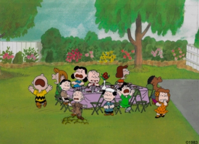 This is an original hand painted production cel used in making "A Charlie Brown Thanksgiving" 1973. Featured here is Woodstock.