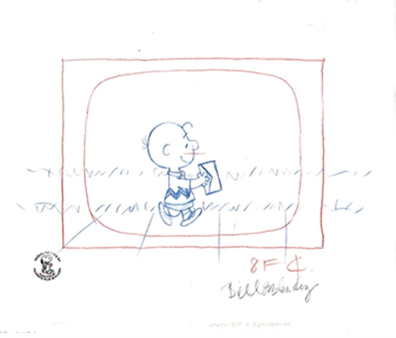 This is an original production drawing signed by Bill Melendez. This was used in making "The Charlie Brown and Snoopy Show" 1983. Featured here is Charlie Brown.