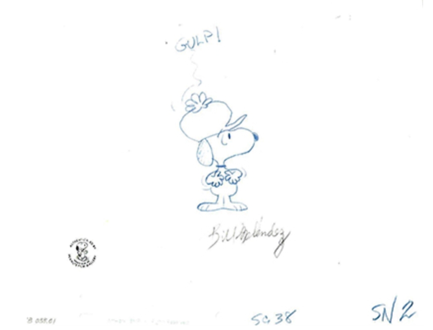 This is an original production drawing signed by Bill Melendez. This was used in making "It's the Easter Beagle, Charlie Brown!" 1974. Featured here is Snoopy.