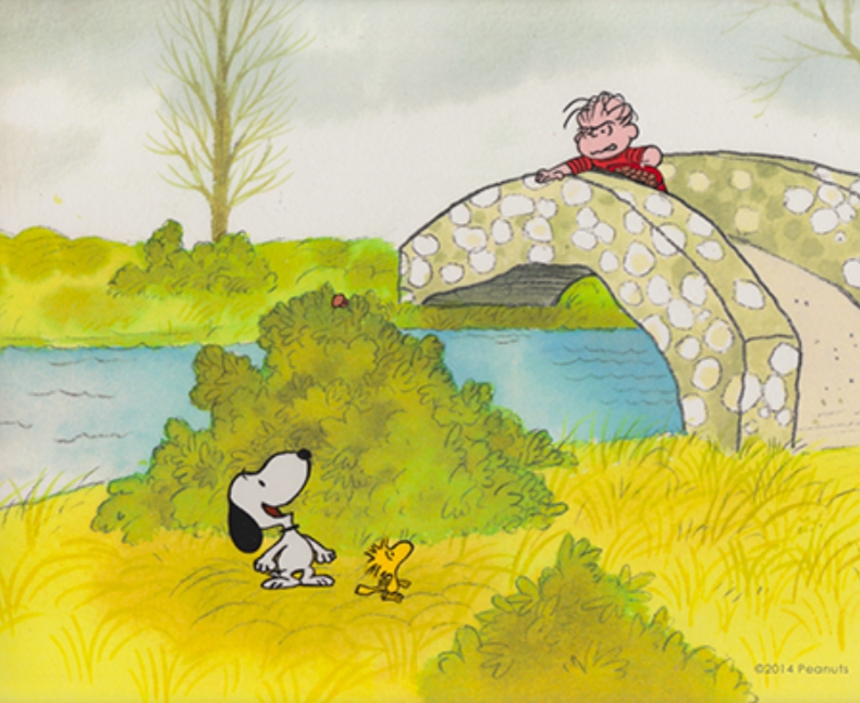 This is a hand painted original production cel set-up with matching animator's drawings used in making "Be My Valentine, Charlie Brown" 1975. Featured here are Snoopy, Woodstock and Linus.
