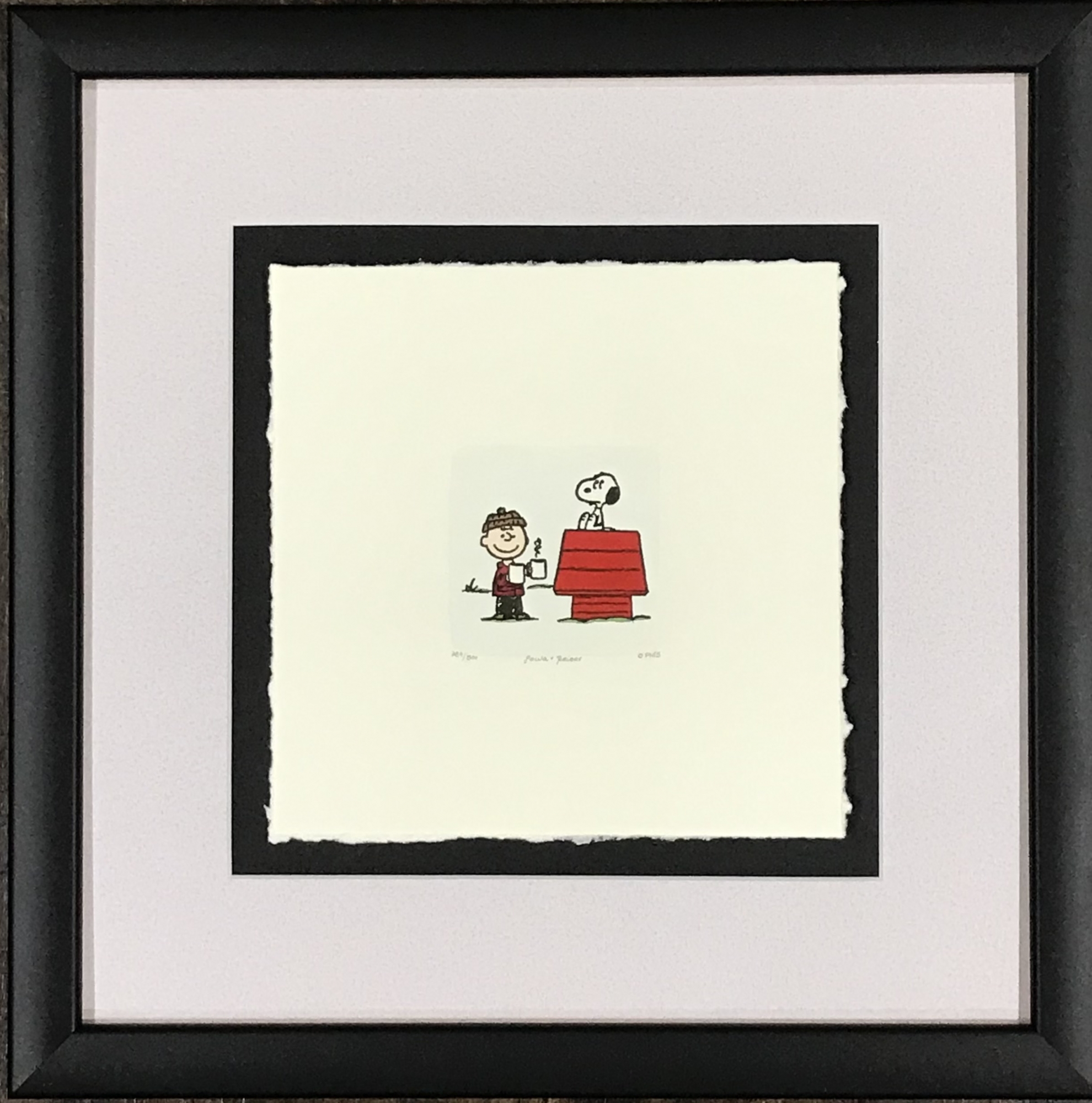 A couple of warm mugs on a cold winter's day in this heart-warming Peanuts animation art piece Featured here is Snoopy and Charlie Brown. Also available unframed for only $75US!.