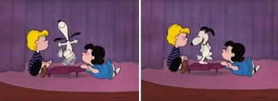 More fun with the Peanuts gang in this sweet animation art piece! Featured here is Snoopy and Woodstock. Available unframed for only $75US!