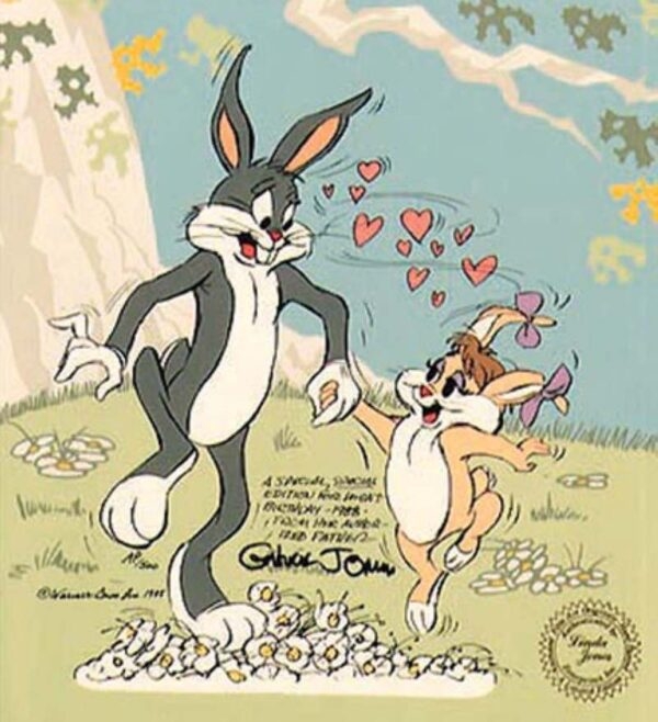 This is a hand painted limited edition cel featuring Bugs Bunny and Baby Bunny. This has been personally signed by the late Chuck Jones.