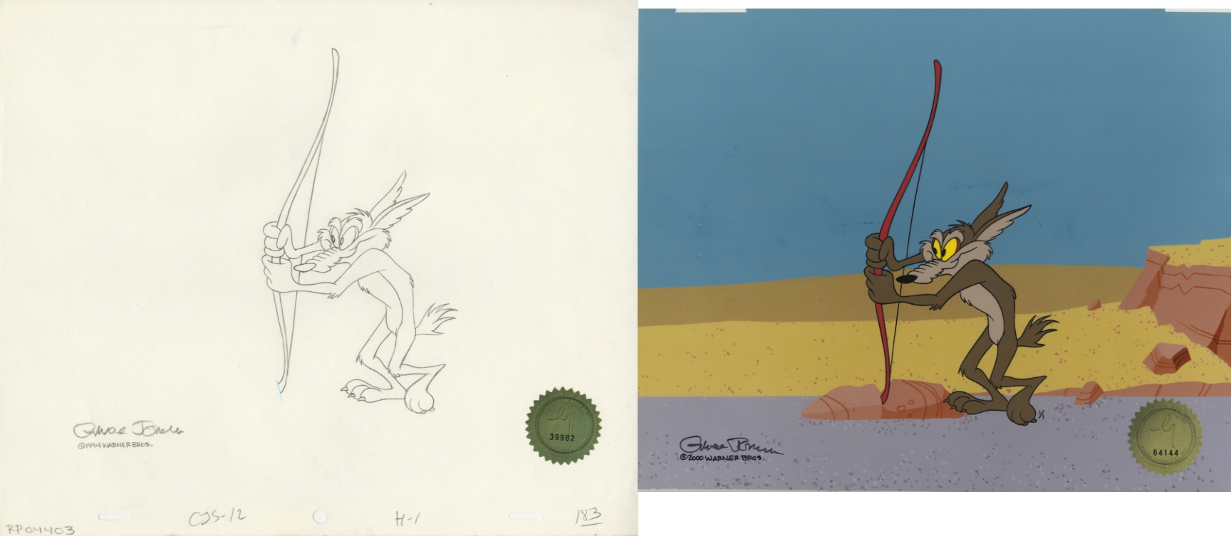 While they lack the vivid colour of cels, drawings are very desirable for two main reasons. Many collectors prefer drawings because it is at this stage that the animators have really exercised their talents and brought the characters to life. Another appealing aspect of drawings is that they generally cost significantly less than a comparable production cel.