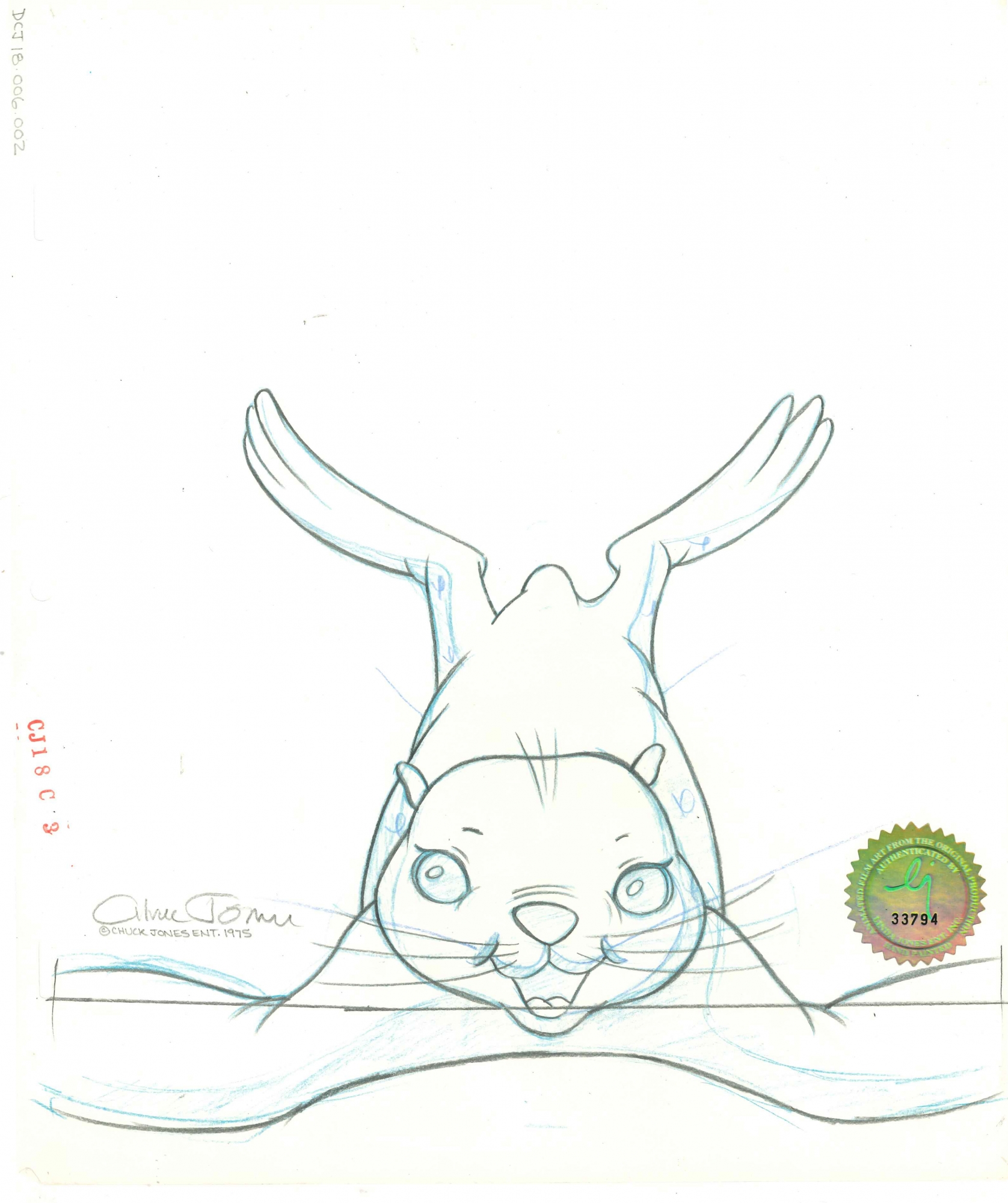 This is an original production drawing used in making "The White Seal" 1975. This has been personally signed by the late Chuck Jones. Featured here is Kotick.