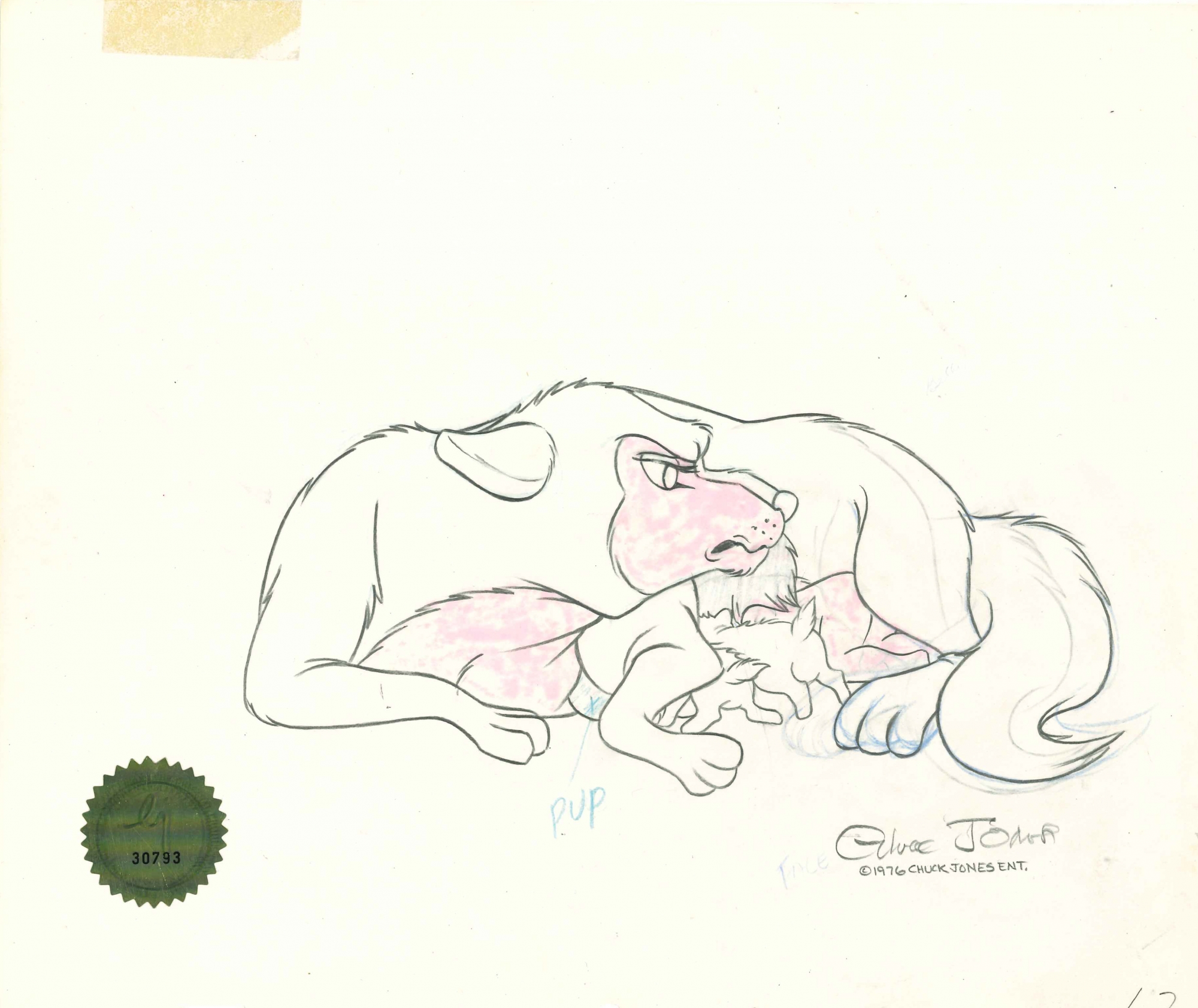 This is an original production drawing used in making "Mowgli's Brothers" 1976. Mowgli's Brothers is a 1976 television animated special directed by famed animator Chuck Jones. It is based on the first chapter of Rudyard Kipling's The Jungle Book. This has been personally signed by Chuck Jones.