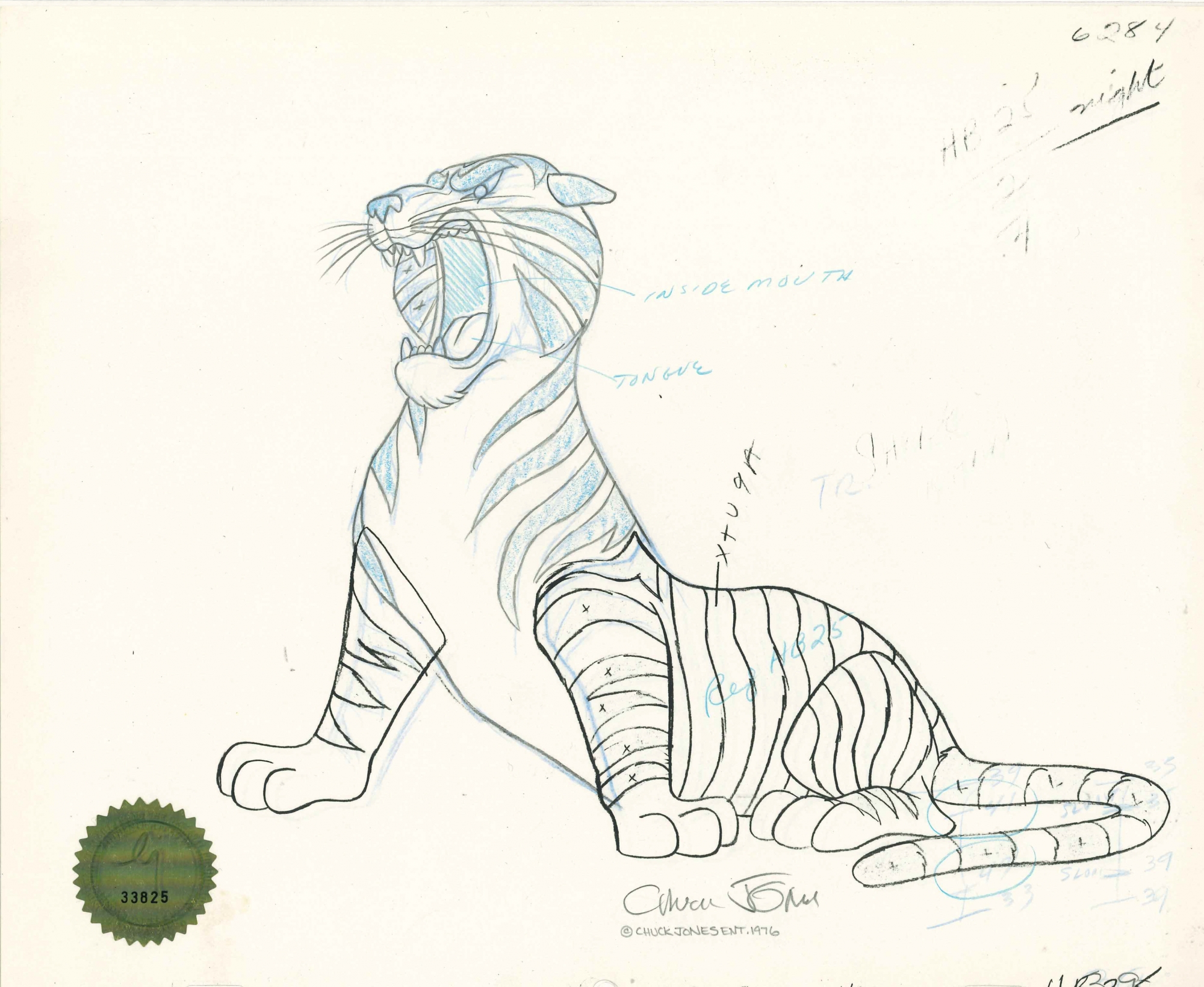 This is an original production drawing used in making "Mowgli's Brothers" 1976. Mowgli's Brothers is a 1976 television animated special directed by famed animator Chuck Jones. It is based on the first chapter of Rudyard Kipling's The Jungle Book. This has been personally signed by Chuck Jones.