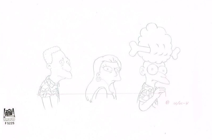 This is an original production drawing used in making "The Simpsons" Episode ZABF13 "Warrin' Priests (Part Two)" May 3, 2020. Featured here is Sideshow Mel.