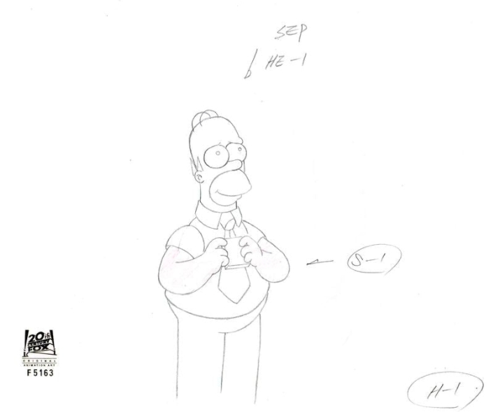 This is an original production drawing used in making "The Simpsons". Episode 1F13 "Deep Space Homer" Feb. 24, 1994. Featured here is Homer Simpson.