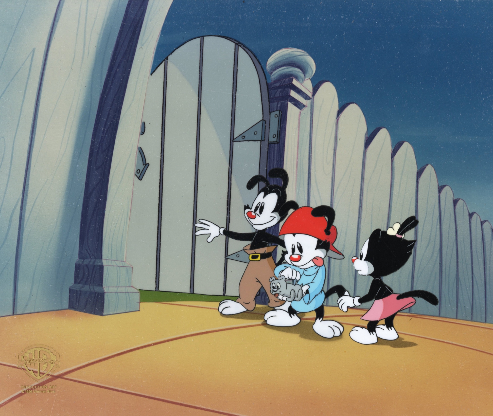 This is an original production cel used in making "Animaniacs". Featured here is Wakko, Yakko and Dot.