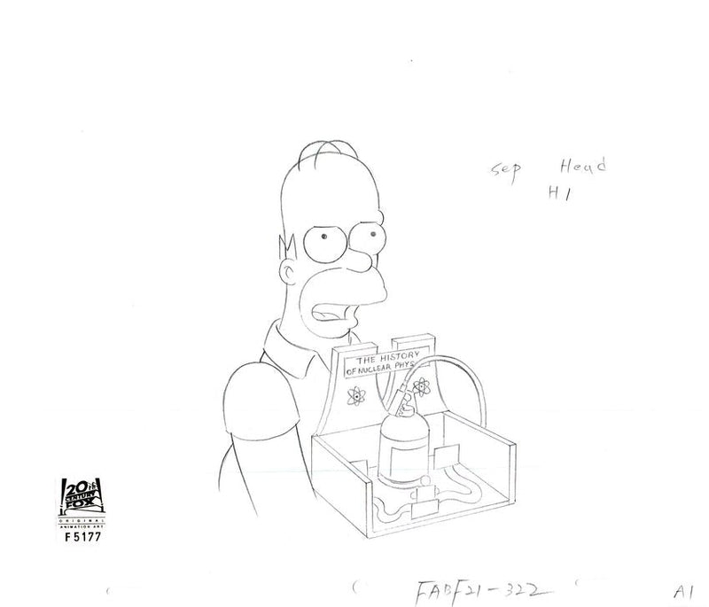 This is an original production drawing used in making an episode of "The Simpsons". Episode FABF21 "Fat Man and Little Boy" December 12, 2004. Featured here is Homer Simpson.