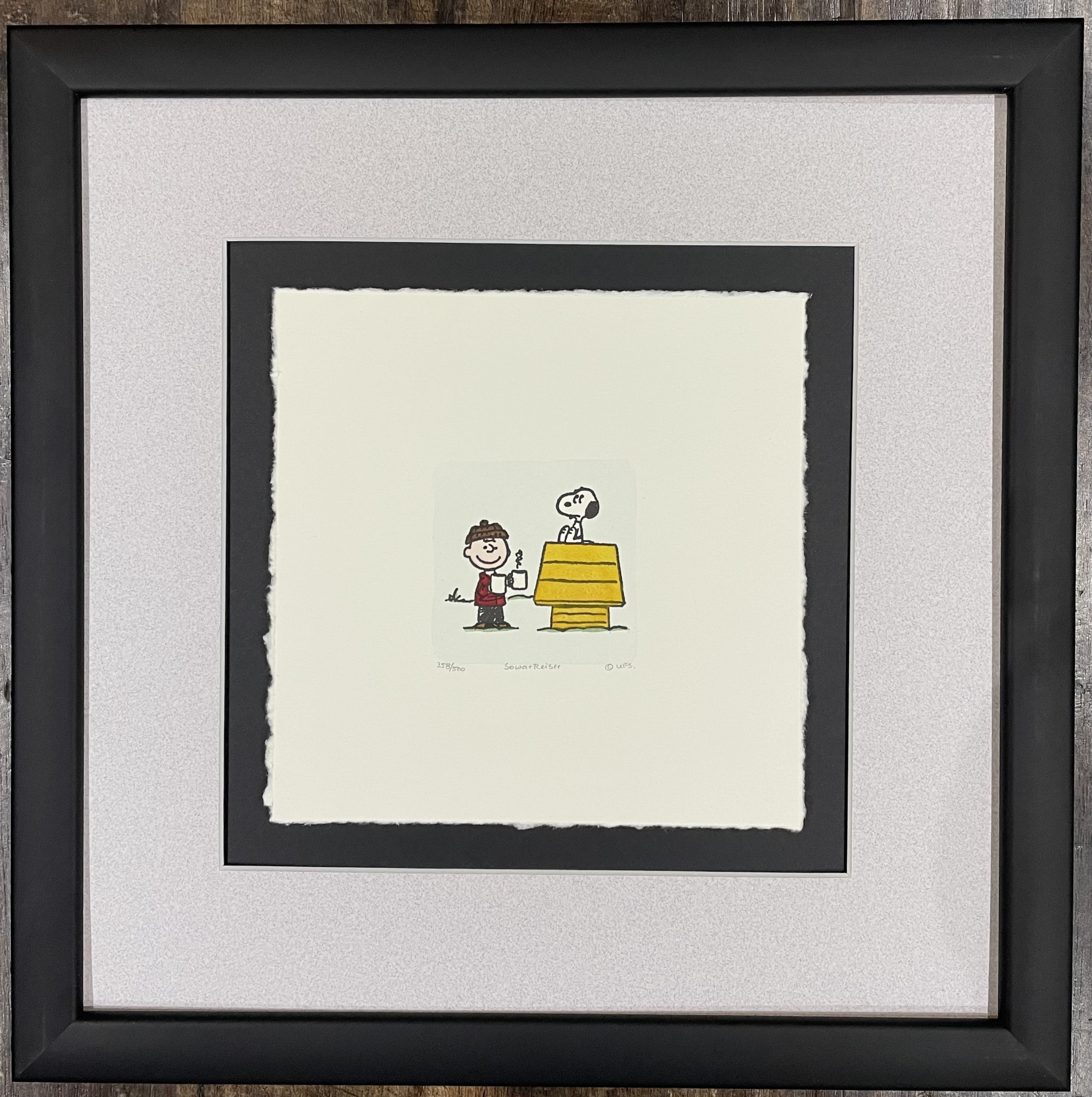 A couple of warm mugs on a cold winter's day in this heart-warming Peanuts animation art piece Featured here is Snoopy and Charlie Brown. Also available unframed for only $75US!