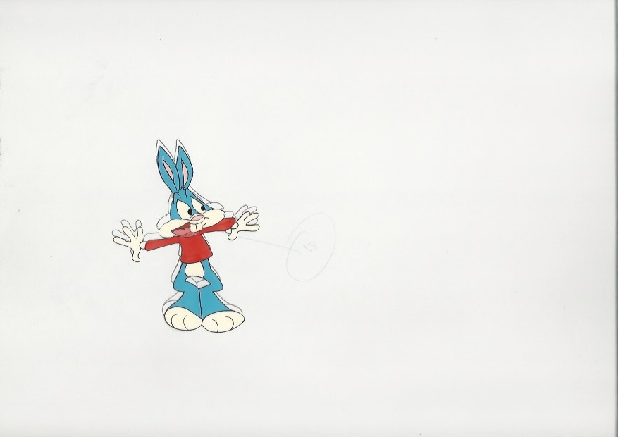 This is an original hand painted production cel with matching production drawing. Note: the drawing is attached to the cel. Featured here is Buster Bunny. Unknown episode. Comes with a gallery certificate of authenticity.
