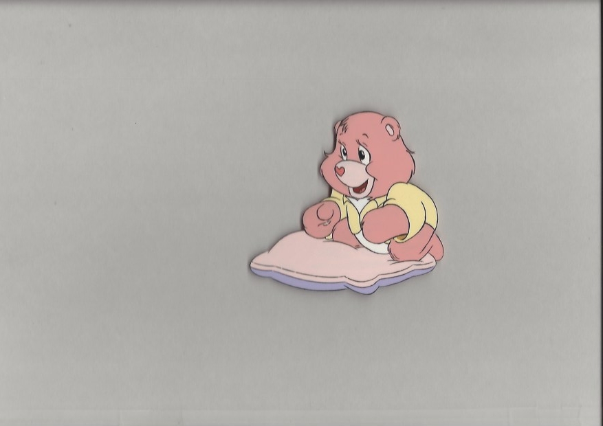 This is an original hand painted production cel of Carebear Cheer Bear. Featured here is Cheer Bear. Comes with gallery certificate of authenticity.