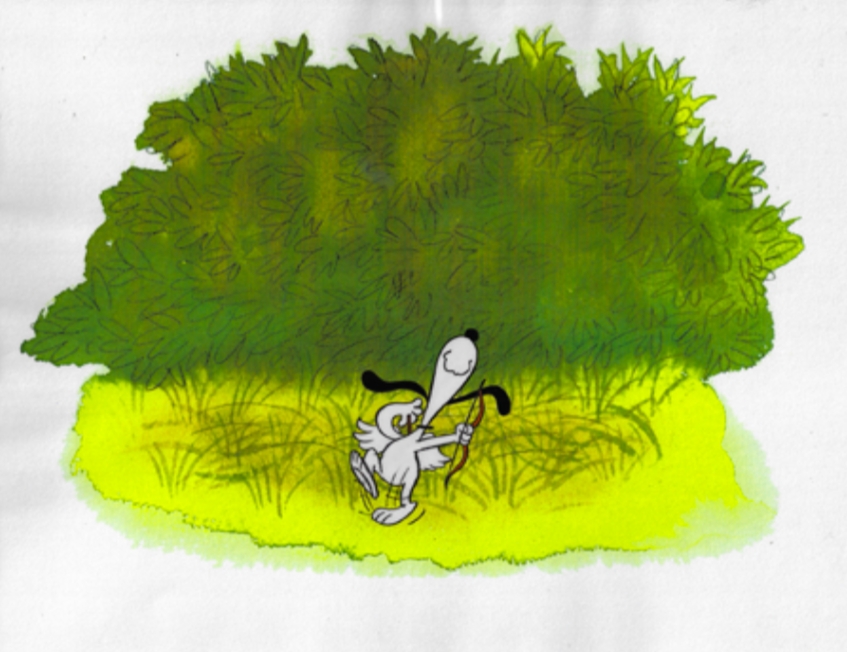 This is a hand painted original production cel set-up with matching animator's drawing used in making "Be My Valentine, Charlie Brown" 1975. Cupid Snoopy hits his target...will Cupid’s magic help good ‘ole Charlie Brown? Featured here is Snoopy.