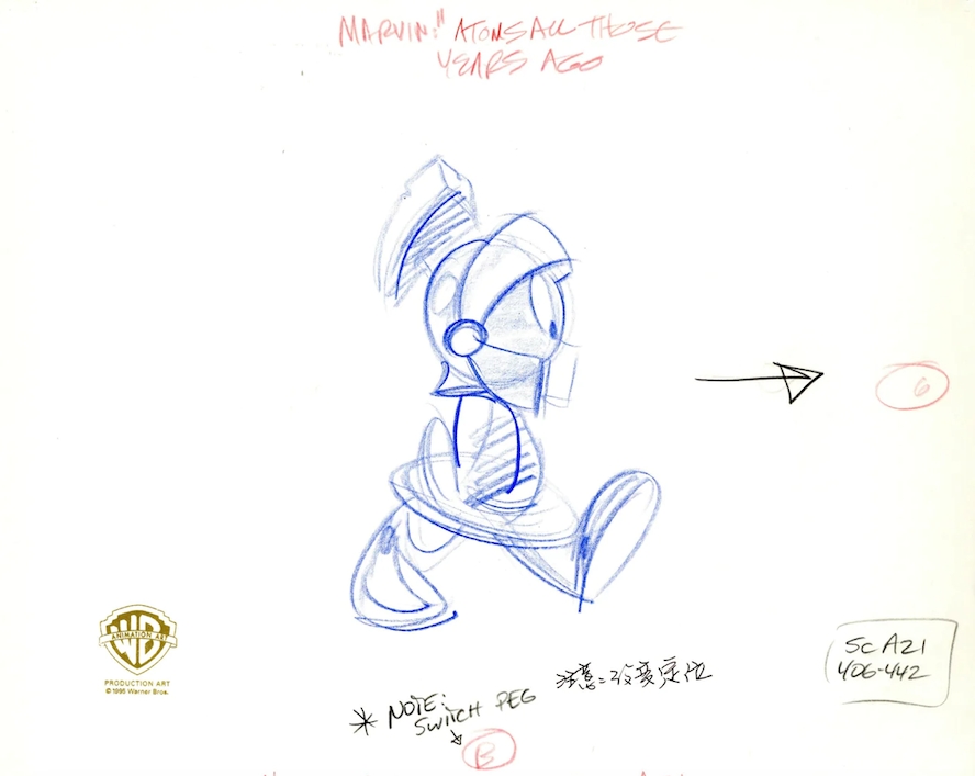Original production drawings are one-of-a-kind pieces of animation art. Prior to the creation of cels, each character pose and action must be drawn in pencil. These drawings are the artistic backbone of the film or television show, and are much in demand by collectors.