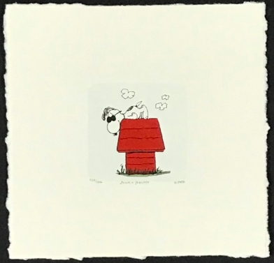 This is a hand painted limited edition etching. Snoopy as Joe Cool. A great Peanuts animation art image. Available framed for only $129US.