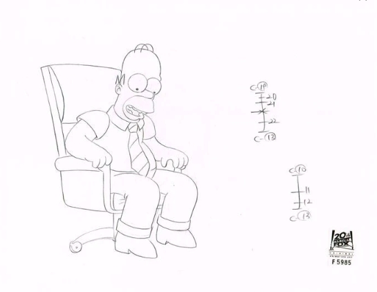 This is an original production drawing used in making "The Simpsons" Episode 3F14 "Homer the Smithers" February 25, 1996. Featured here is Homer Simpson.
