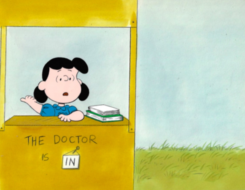 An original hand painted production cel set-up with animator's original production drawing(s). This art was used in making "Is This Goodbye, Charlie Brown?" 1983. Featured here is Lucy.