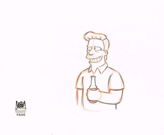 This is an original production drawing used in making The Simpsons. Episode 3F15 title "A Fish Called Selma" March 24, 1996. Featured here is Troy McClure. This production drawing was part of a cut scene.