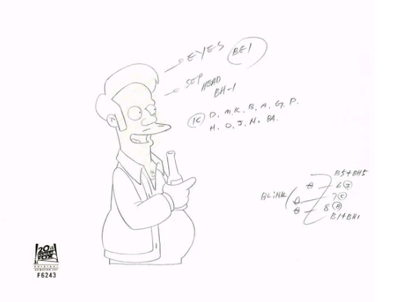This is an original production drawing used in making The Simpsons. Episode 3F15 title "A Fish Called Selma" March 24, 1996. Featured here is Apu.