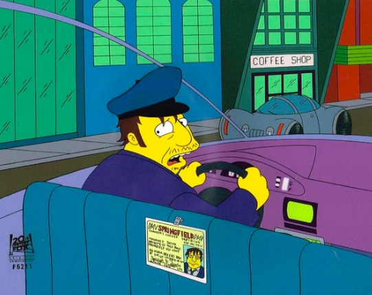 This is an original hand painted production cel. This was used in making an episode of "The Simpsons". Episode titled "Lisa's Wedding" March 19, 1995. Featured here is Mayor Quimby.