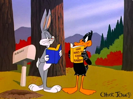 This is a limited edition fine art print. Featured here are Bugs Bunny and Daffy Duck in a classic scene.