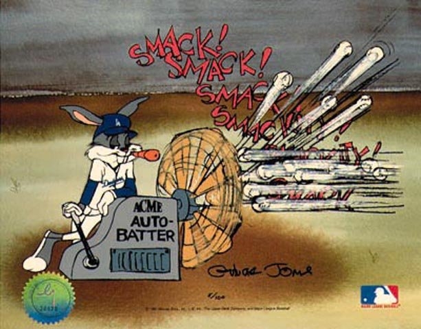This is a hand painted and hand inked limited edition cel created from an original Chuck Jones work. Featured here are Bugs Bunny and Daffy Duck. This is signed by Chuck Jones.