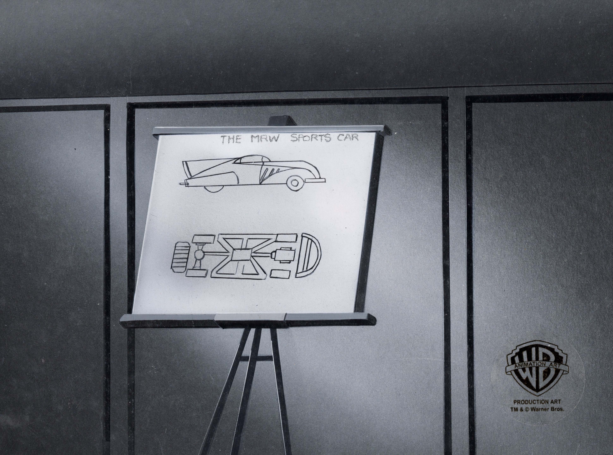 This is an original production background used in making "Batman Animated Series : The Mechanic". January 24, 1993. Featured here is Batmobile.