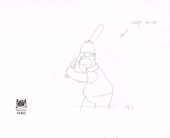 This is an original production drawing used in making The Simpsons. Episode title "Bart the Mother" September 27, 1998. Featured here is Homer Simpson.