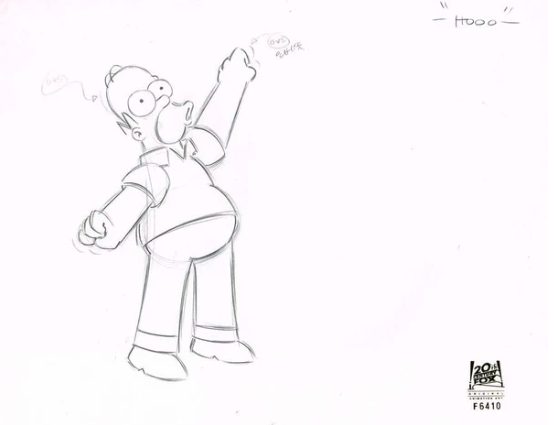 This is an original production drawing used in making The Simpsons. Episode title "Bart on the Road" March 31, 1996. Featured here is Homer Simpson.