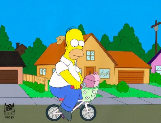 This is an original hand painted production cel. This was used in making an episode of "The Simpsons". Episode titled "Duffless" February 18, 1993. Featured here is Homer Simpson.