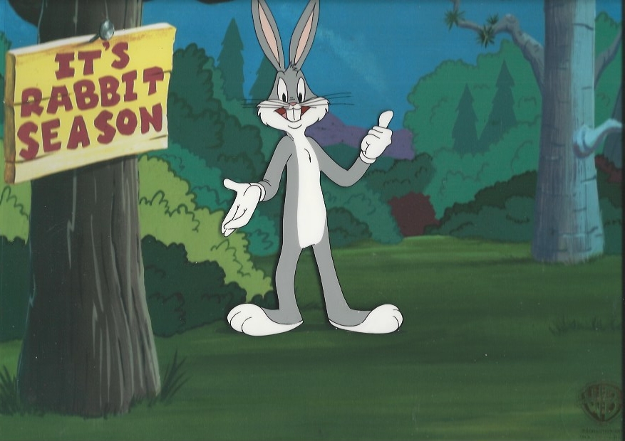 This is an original hand painted production cel used in making Looney Tunes television. Featured here is Bugs Bunny.